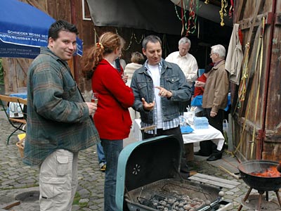 Trotzdem strömten neben dem Regen auch zahlreiche Mitwirkende samt Anhang ins Zürcher Seefeld, wo uns Gastgeber Ralf Reisinger (auf dem nebenstehenden Bild beim subtilen Einheizen des Grills zu sehen!) und viele Köche und Köchinnen aus den Vereins-Reihen einen tollen Abend bereiteten. Mehr darüber ist in der 18. Ausgabe der Vereinszeitung BACKSTAGE.
