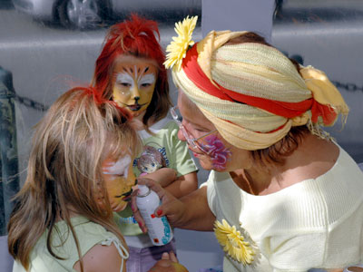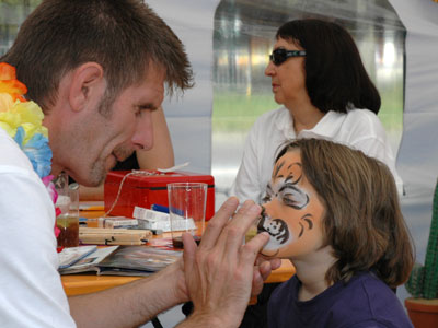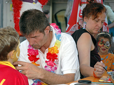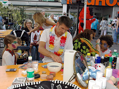 Am Samstag und Sonntag, 4. und 5. September trafen sich also wieder unzählige Heimweh-Latinos, Salsa-Fans und Tequila-Spezialisten auf einen Höck und/oder Schwatz. Für die Kleinen und andere Junggebliebene gab es natürlich auch diesmal das beliebte "Schminken für Kinder" mit Corinne Trösch und Lotti Zwingli und Fabienne Boller. Tatkräftig-künstlerische Unterstützung erhielten sie erstmals vom Schmink-Adlaten Frank Wegener. Und wenn ihnen vor Erschöpfung nicht die Farbe vertrocknet ist, dann schminken sie wohl noch heute ;-)