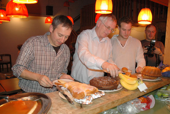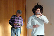 Immer vor Jahresende treffen wir uns zum ersten gemeinsamen Proben-Wochenende. Ein wichtiges Ereignis für alle Beteiligten und Gästen, denn zum ersten Mal soll möglichst ohne Textbuch und - dank genügend Zeit - mit vielen Inszenierungsdetails geprobt werden. Natürlich darf auch der gesellige Teil nicht fehlen, weshalb wir jeweils gemeinsam kochen und den Abend mit Speis und Trank ausklingen lassen. Gekocht hat diesmal allerdings ein Profi. Raphael Ashkuri verwöhnte uns mit Braten und Kartoffelstock (vom Desserbuffet wollen wir gar nicht erst reden) und hat sich damit einen Ehrenplatz in den Vereinsannalen gesichert.