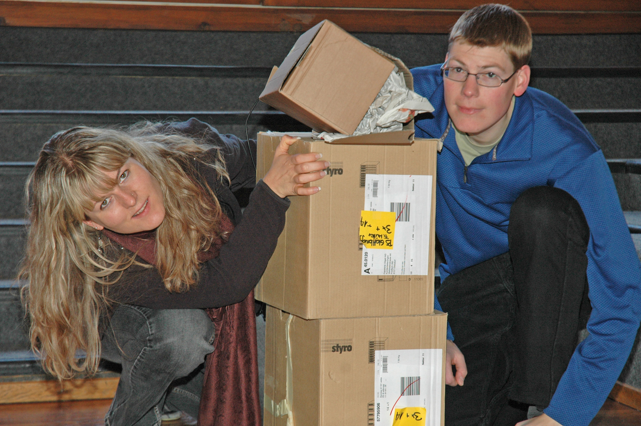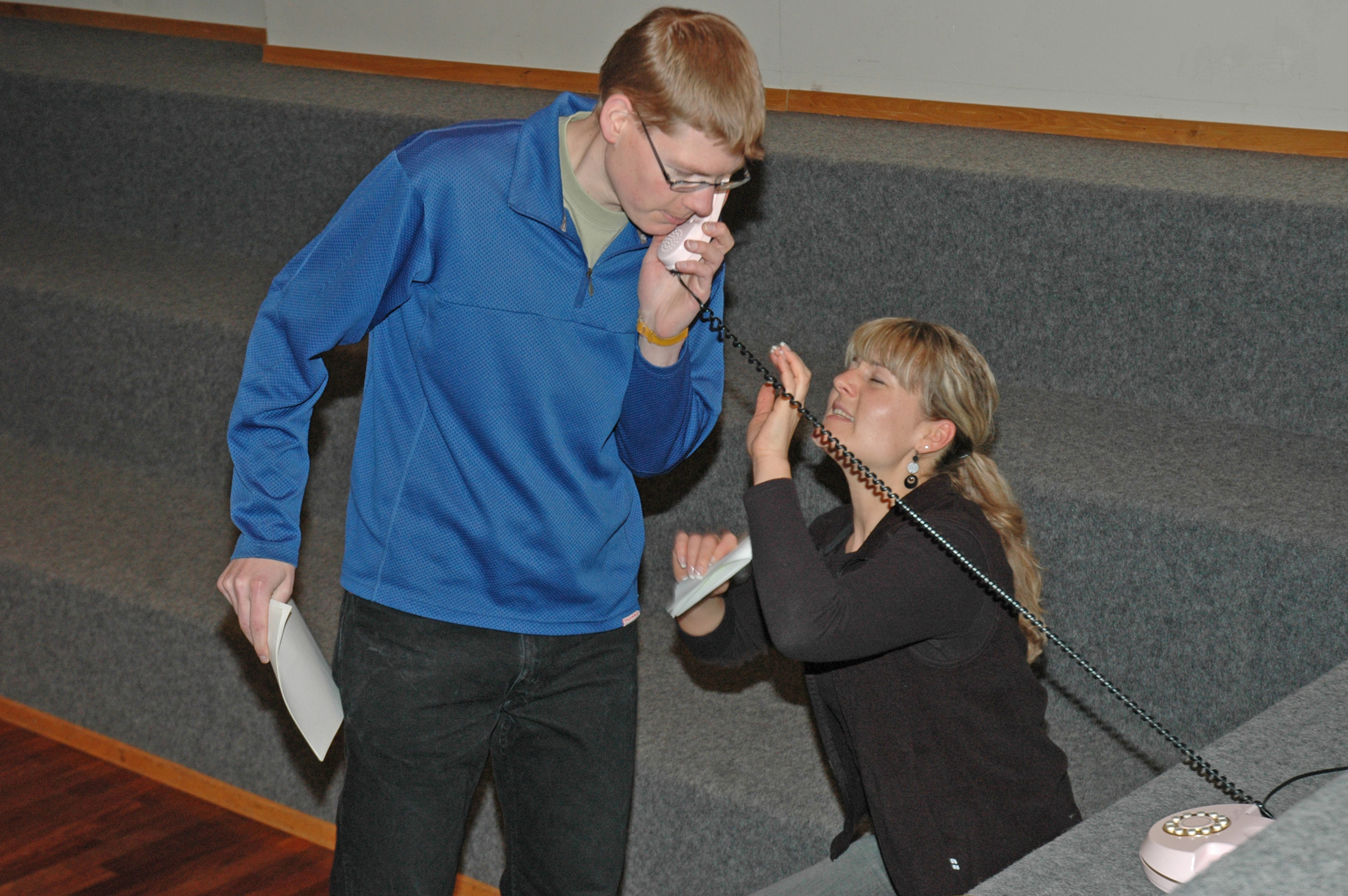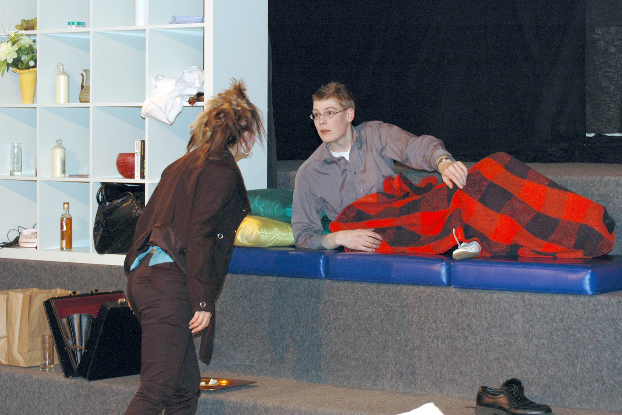 Caroline Humbel als Corie und Hubert Mäder als Postbote.