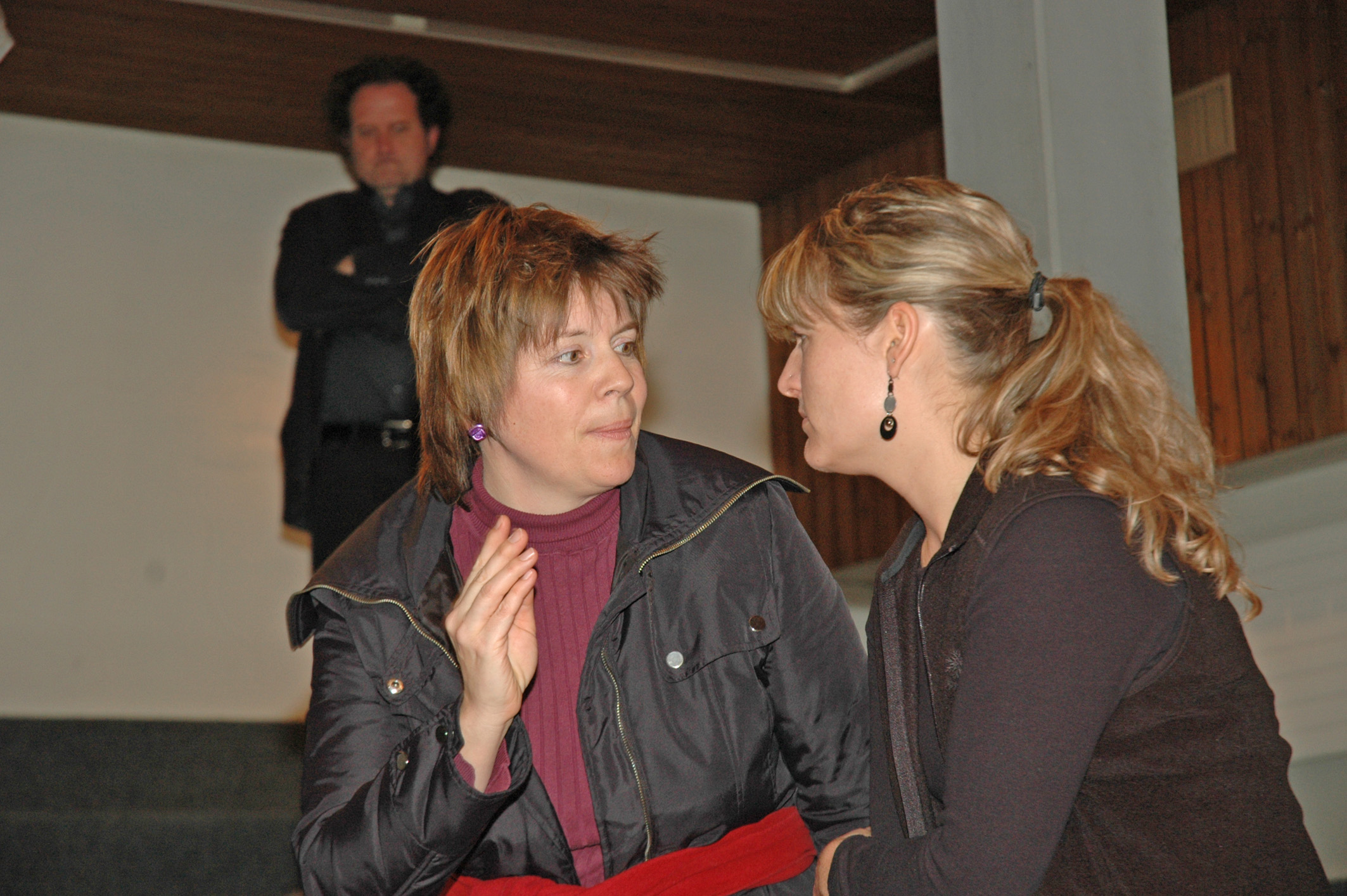 Barbara Keller (Mrs. Banks) und Caroline Humbel (Corie). Im Hintergrund: Regisseur Michael Karch