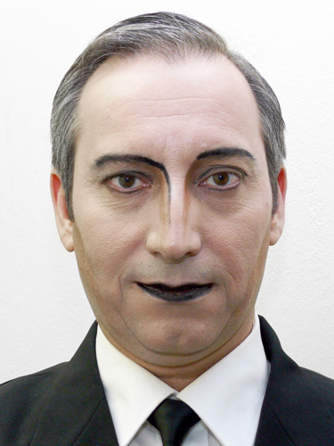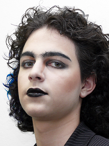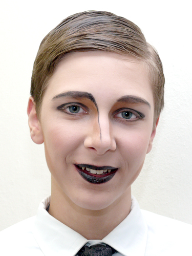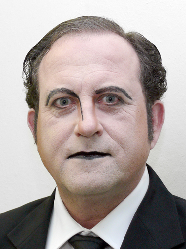 In Produktionen wie «Frank der Fünfte» (siehe auch «Amadeus» oder «Der tollste Tag») bietet sich ein fantasievolleres, verfremdendes Make-Up an. Unsere Masken- und Kostümbildnerin Corinne Trösch hat für den Bankenclan ein sehr starkes, düsteres Grundmotiv entwickelt, das die finsteren Absichten dieser Damen und Herren unterstreicht. Frisuren und Kostüme tragen natürlich ebenfalls zum Erscheinungsbild bei. Nur die Bankkunden dürfen sich als sympathische Zeitgenossen sehen lassen.