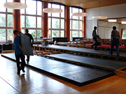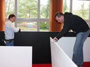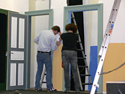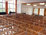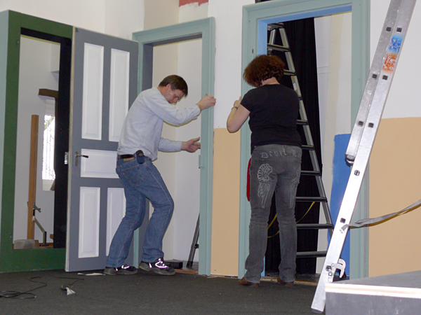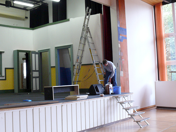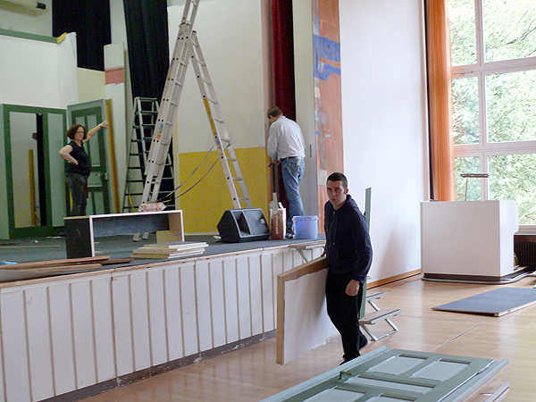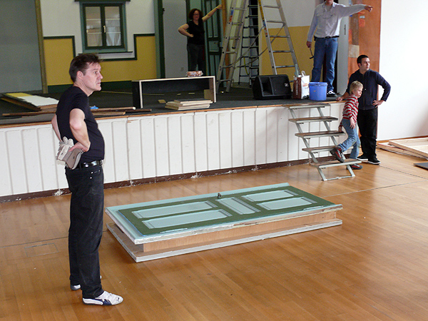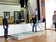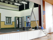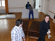Unterbrochen nur von ein paar Kaffee- und Brötchenpausen dauert die Aktion bis in die frühen Abendstunden. Doch dann ist es - wieder einmal - geschafft! Bühne und Saal sind leer und blitz blank geputzt. Nichts erinnert mehr daran, dass noch vor ein paar Stunden Tonnen von Holz und Metall von der jüngsten Produktion des KT12 erzählt hatten. Ein Dank geht an alle, die tapfer mitgeholfen haben, dass wir auch dieses Jahr alles in vorgesehenen Zeitrahmen auf die Reihe bekommen haben. Ganz besonders bedanken wir uns bei Heinz Brehm, ohne dessen Knowhow und Organisationstalent wir die Bühne weder auf- noch abbauen könnten...